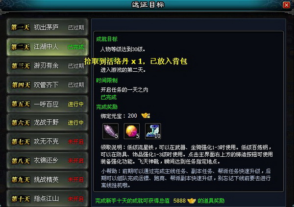 新服开启,丰厚新手礼包为你奉上!只要激活新手卡即可领取价值1000元宝大礼包,在游戏里右上角找到每日活动列表界面里的福利选项兑换新手卡奖励。而全新征程,英雄们不可忘却的当然是远征目标,而且完成远征目标可以总共获得5888元宝的大放送奖励!让你轻松玩转最新ARPG大作,成就自己的傲视群雄的远征梦想!
