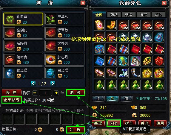 远程功能是目前使用最为广泛VIP实用机制,该功能包括远程药店,远程仓库和天上人家入口。远程药店是其中最为便捷,最为强大的元勋级别功能,玩家无论是在副本中或者在野外某角落,当装备耐久度为零,无法使用的时候,只要打开背包,进入远程功能界面,打开远程药店就可以进行装备处理,远程药店还兼有出售道具,购买药水等各种日常必备操作。远程仓库就不必介绍了,他有效的解决了游戏小背包和大量掉落物之间的矛盾。