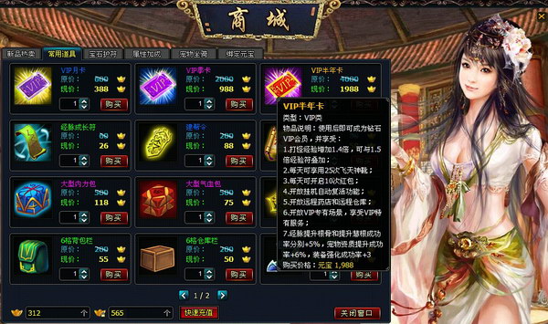 VIP在游戏中功能相当齐全,实用性也十分强悍,VIP可以通过与游戏中其他玩家交易获得,也可以通过在商城购买获得,目前游戏中还没有击杀怪物掉落VIP卡的功能(不排除未来将会开放击杀怪物获得VIP卡),VIP分为月卡,季卡和半年卡,从官方提供的数据来看,有很大一部分玩家是通过自由交易获得VIP卡并使用的,在副本战斗中击杀BOSS将获得珍贵道具,将道具挂售,获得元宝,或者直接使用道具和其他玩家交换VIP卡都是常见的事情。