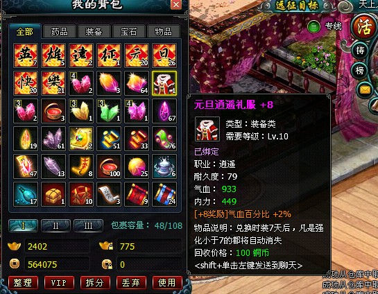 玉兔本命年2011破土而出,4399《英雄远征》兔年计划火热再续,继圣诞节,元旦节,腊八节以及大假日新春的跨年体验版之后游戏又不断推出温馨的幸运大礼包,在不久的将来,礼包将以不同的形式火热登场,在线奖励大变革,远征目标激情无限,等级礼包神秘破解,4399英雄远征将ARPG超级体验进行到底,礼服时装免费放送,节日纪念品或将实物掉落,一切秘密等你来破解。远征目标礼包是目前英雄远征中最具实用价值的递推礼包,从等级达到25开始,大家都将接受各国皇帝的恩赐,不断的接受远征之礼,等级达到25,玩家可以对自己的经脉根骨进行提炼升级,根骨级别越高,玩家的战斗能力就越强大。25级远征礼包就含有5枚经脉成长符和10枚武陵回城,并附带100绑定元宝。