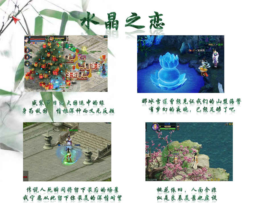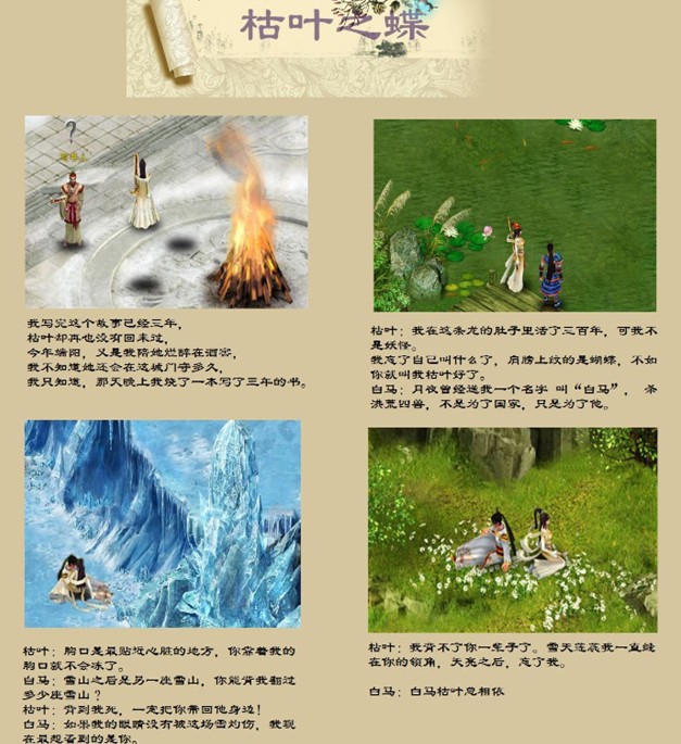 静态电影是神马?你被吸引进来了?2011头等热词静态电影是指用静态的图像,也就是照片(相对于电影而言,电影是活动影像),讲述一个故事或者一个情景。游戏中的截图很无聊?看看4399《英雄远征》最新静态电影大征集,你会颠覆这一看法!天上人间良辰美景,墨谷青翠,古皇陵森严,大泽乡幽暗惊栗,瑶池清越,桃花唯美,何处不是偶遇、双修之洞天福地,密林私语,深情对望,有爱的剧本让4399英雄远征之截图不再单调!
