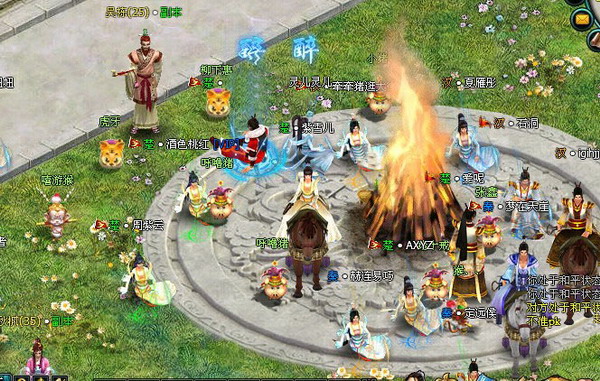 武陵城城市中心广场,英雄远征全游戏唯一一个和平安全区域内,每天24小时篝火狂燃,柴火不断,笑闹声不绝于耳。在这个中心广场的篝火边上,大家可以借着火光饮酒作乐,谈情说爱,可以于此取暖,可以携带美酒“二锅头”来此共饮。当然,如果能让你的小童携带一些木柴来给和平圣火加料,也会获得神的恩赐的。