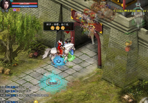 运镖系统的自由性决定了它斗争的复杂性,一部分尼玛玩家整天拉帮结拜在运镖的主干线上巡逻,并在运镖的必经之路设置各种障碍,西南城门是英雄远征运镖的必经之路,运镖无法使用小飞鞋,玩家无论怎么绕都必须经过西南门出城,西南城门成了一夫当关万夫莫开的重要隘口。如果尼玛大叔在这里设防收过路费,那么全服的玩家都要遭殃,此时只有集结高手合围西南门,运镖大部队才能通过。