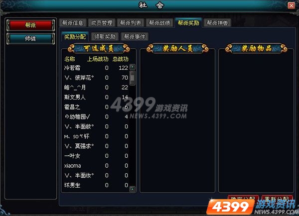 如果你认为红粉兵团的帮会只有清凉照福利和调戏搞笑,那也太肤浅。每天开放的帮派战不但有30万经验4000铜钱,还会有个人战功的积累和帮会奖励的积累。作为帮主和副帮主每天的一大重要任务就是做好帮派战发动报名、参战和帮战奖励的分配。不患寡而患不均是中国人的特性,气血包、内力包和口粮平时没人留意,分配的时候就不定有矛盾。