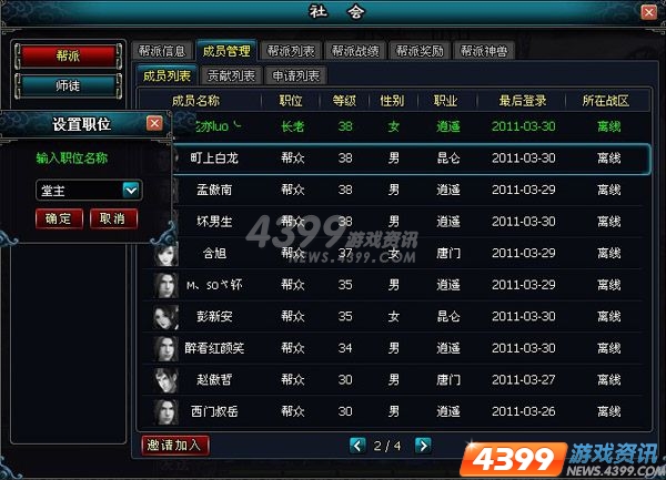 好在有别的方式可以平衡:授予职位和称号。帮会的职位有三种:帮主/副帮主、长老和堂主。帮主和副帮主管理层掌握着进人、分配奖励、设置职位和祭唤神兽的大权,长老则有权进人和开人。所以,红粉兵团的掌舵者需要时刻注意贡献排行榜,提拔那些贡献居前的人当长老。管理工作不是人人都喜欢的,所以V、半面妆也就让贤给好朋友冷若霜了。