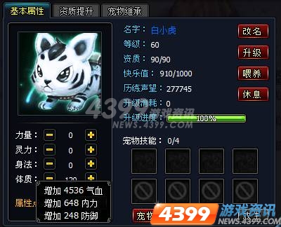 宠物练到极品几近妖,属性值都满的小宠是什么样子?这位女玩家“果果丫头”还爆了另外一个料,按住体质猛加120点,满90的资质和60的等级,你就知道了——4536气血、648内力和248防御——极品灵兽可调戏不得。