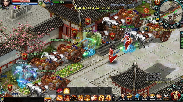 在更新之前,运镖收获大,当风险也大。除了各级镖车都必须在10分钟之内完成运送外,在接取镖之后,还会自动调为国家pk模式。在慢慢运镖路途上,面对着各种强徒出没和不可预知的危险,想要赚点钱分分钟都会为此送上性命。所以那时候运镖的最基本要义就是低调,错开时间。如果你不是有着强力帮会支持的话,最好还是不要选择在国运时间运镖,虽说诱惑大,但是风险更大。多半是客死半道上,人才两空。