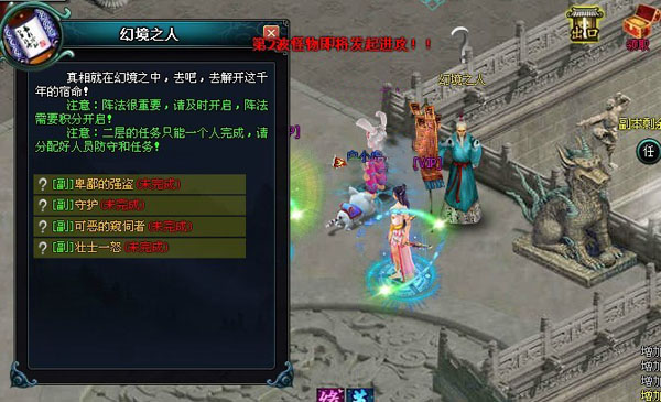 成功的保护公主之后,队伍需要寻找撤出古墓的路线,幻境之门缓缓开启,队员接到新的任务,完成幻境任务也可获得丰厚的奖励,不过,寻找撤离离线的任务只能由队伍中任何一人来完成,其余勇士必须留下来守在公主身边,所以一定要做好防守与去做任务的人员分配。